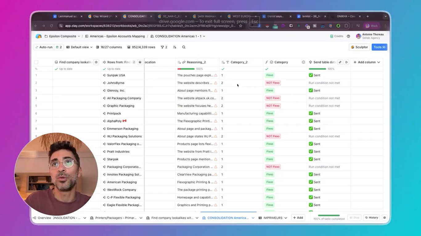 Là où cela devient très puissant : tu peux faire analyser automatiquement le site de chaque entreprise par un agent IA.