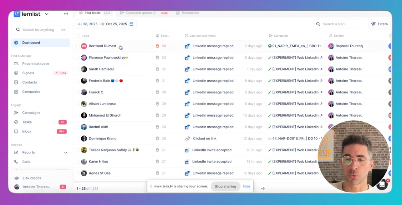 Ce qu’il faut retenir : Lemlist n’est pas “juste” un outil de cold email. C’est une plateforme de prospection multicanale qui te permet de centraliser la data, de séquencer proprement, de piloter les réponses et d’analyser ce qui fonctionne (ou pas), sans multiplier les outils.