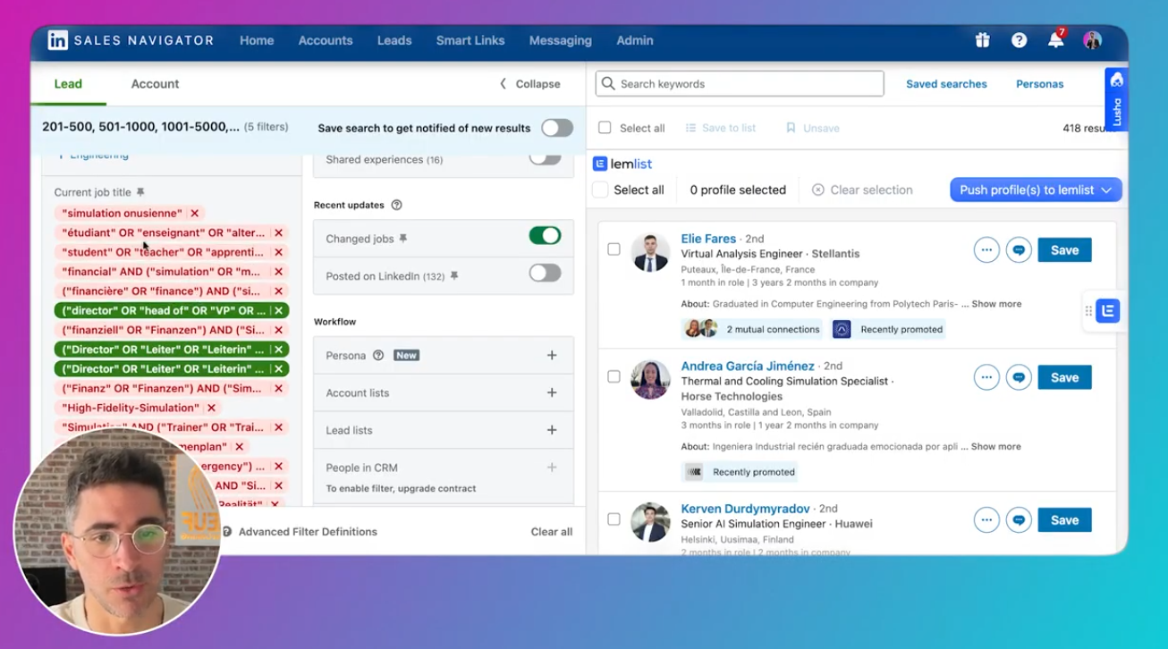 Autre exemple de recherches avancées sur LinkedIn Sales Navigator