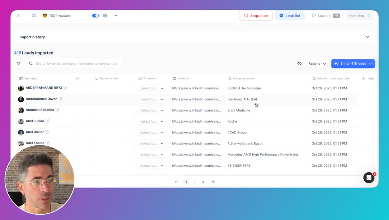 Personnalisation lead par lead (mode ABM) Tu peux ajouter une phrase spécifique pour un lead précis avant lancement. Très pratique pour des batchs ultra qualifiés (10-20 comptes très ciblés).