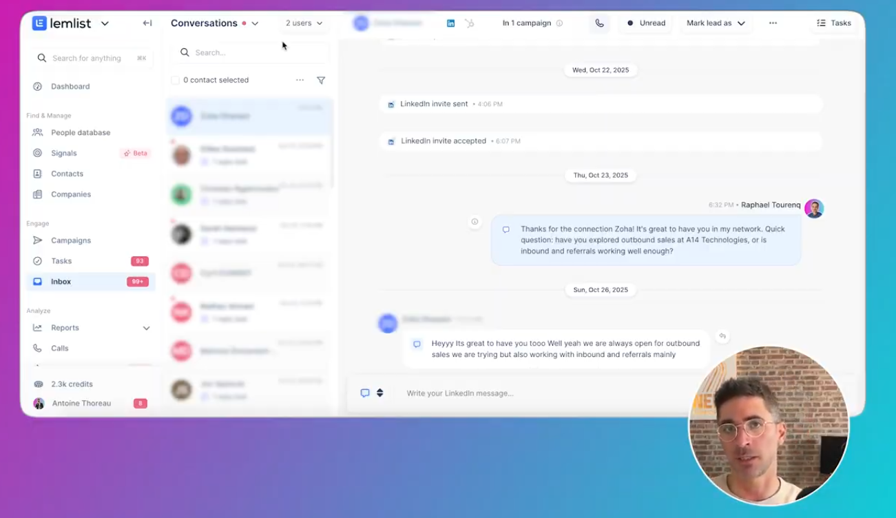 Section “Inbox” de l'outil Lemlist